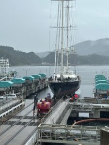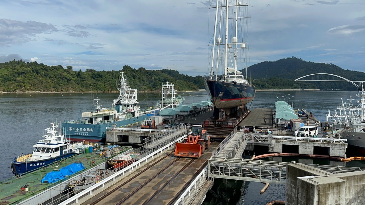 気仙沼市がスーパーヨットの誘致を進めていて、今回初めて入港しました。