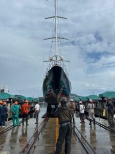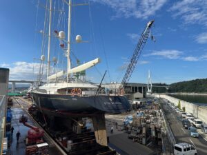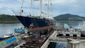 イギリス船籍のスーパーヨット「Fidelis」が気仙沼に初入港し、