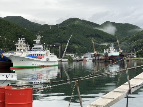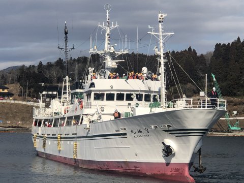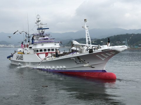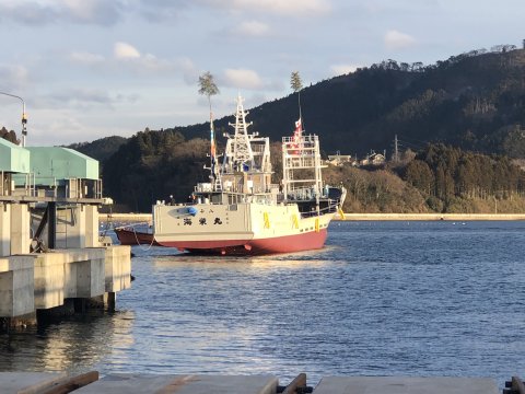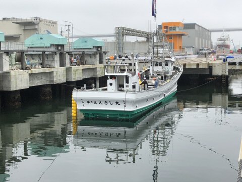2019年末進水の大型マグロ船1昭福丸帰港して
