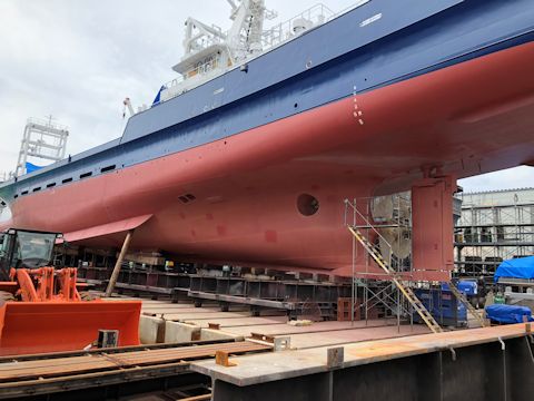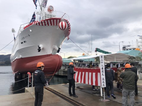 2021-01-18 70m級 まき網積船 進水(式ではない) (気仙沼居る)