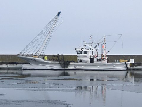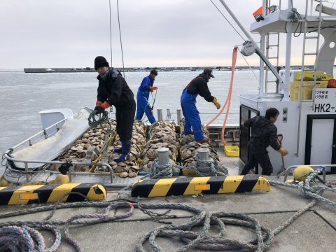58翔海丸水揚げねらって取材に(ホタテ目当