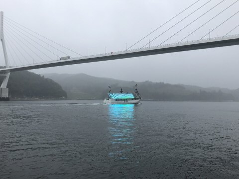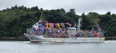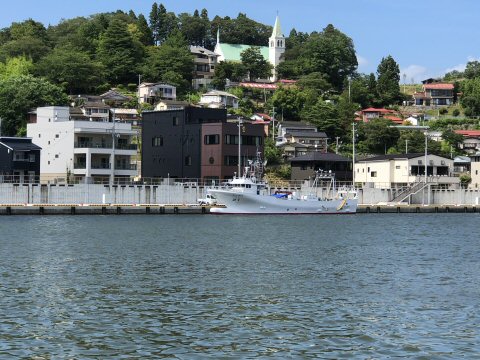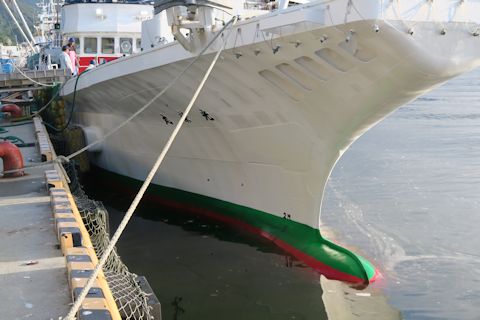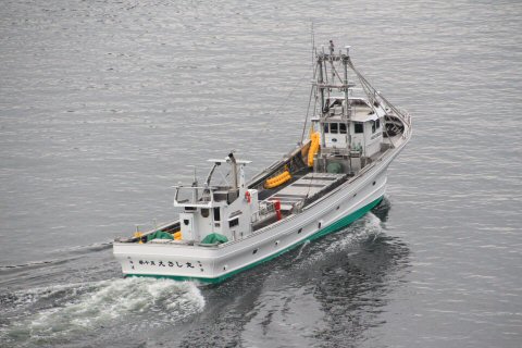 気仙沼船籍船なのが自慢。 イルカもびっくり。