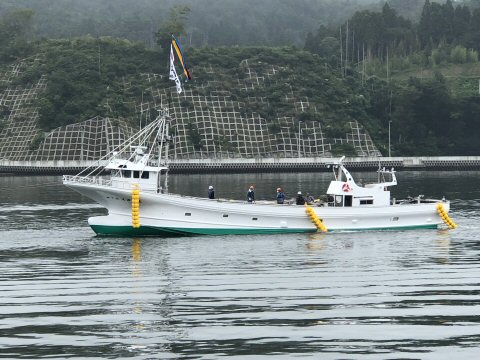 盛合と2人で知来別の栄福丸の船上で隼人丸の船主の皆様と