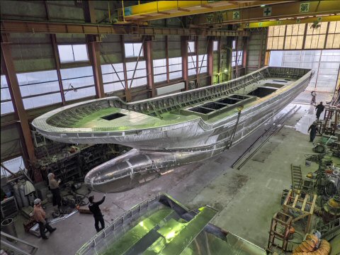 凄い船尾バトックフロー船型。 見事な美しさと思う。