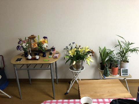 写真は根室の自宅ですが、 葬儀で2束もらってきた供花。