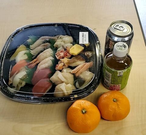 昨年はオードブル。 今年は"花まる"の寿司。 全員一致で。